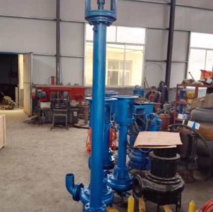 立式长轴泵的工作原理是,长轴泵其叶轮装在井中动水位以下,电动机设置在井上,泵转子部件包含叶轮、叶轮轴、中间轴、上轴、联轴器、调整螺母等零件。通过传动长轴驱动叶轮在导流壳内旋转,水流沿导流壳与叶轮之间的流道,经扬水管向上提升到地面。